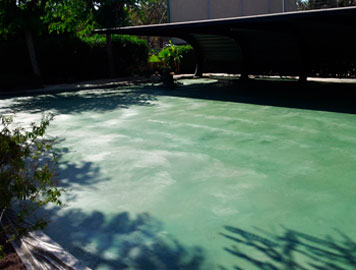 El pavimento de Hormigón desactivado consiste en la aplicación de un producto quimico desactivante aplicado en la superfiice de hormigón y lavado posteriormente con chorro de agua a presión para dejar el arido visto.